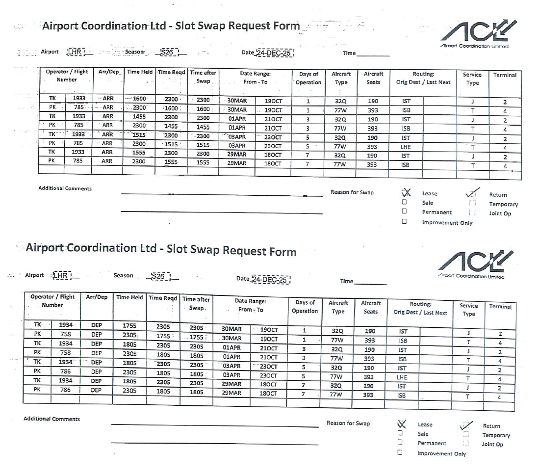 STN S26 Asiana Airlines Airzeta 01-Dec-2025 2 Slot transfer